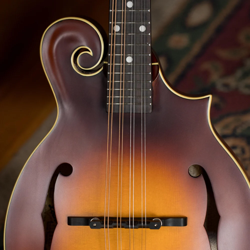 La finition satinée ultra-fine Tobacco Sunburst permet au bois de respirer et de résonner naturellement, libérant progressivement tout le potentiel harmonique de l’instrument. Les détails esthétiques – binding ivoire, incrustation « The Loar » en nacre, mécaniques Grover à boutons nacrés – confirment son statut d’instrument haut de gamme.